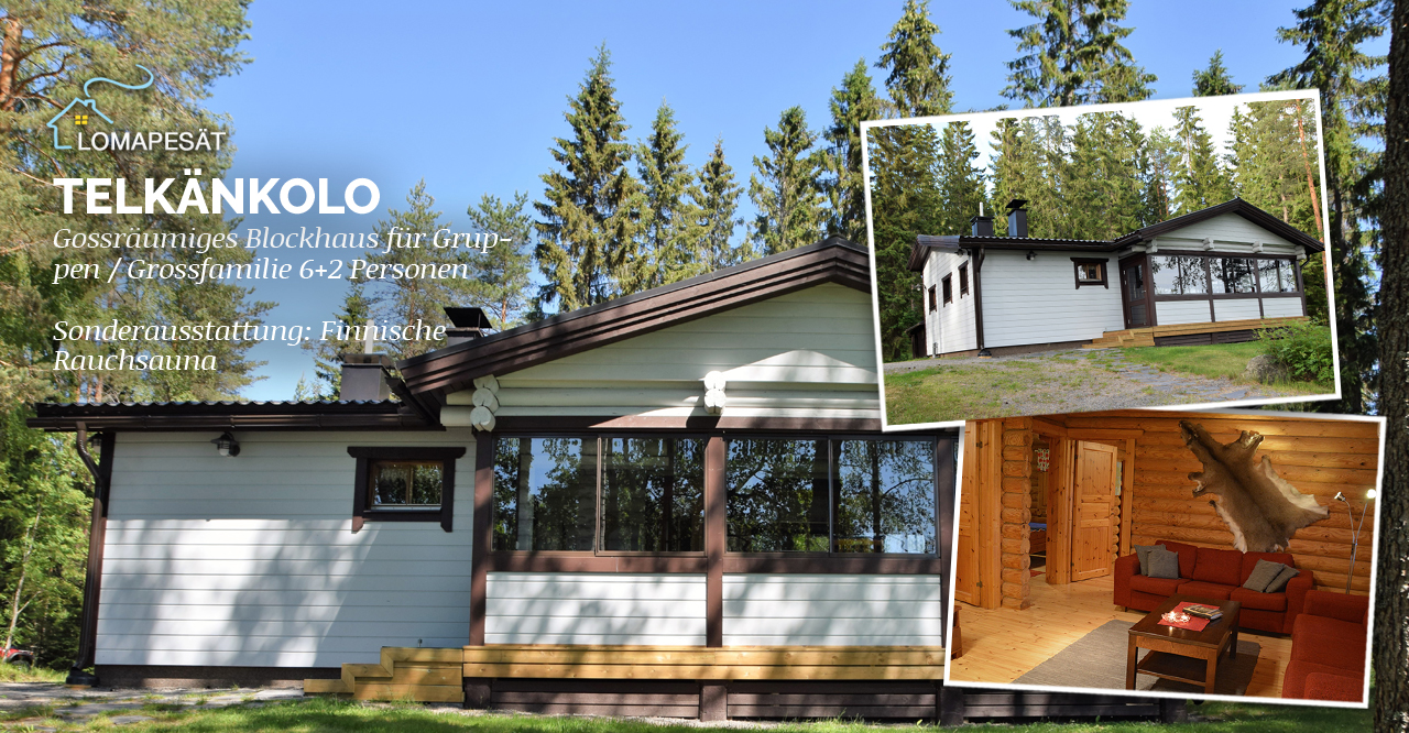 Die Besonderheit am Ferienhaus Tekänkolo ist die auf der Insel gelegenen finnischen Rauchsauna. Sie erreichen die Insel über eine Bruecke. Sie können die Rauchsauna zum selber beheizen oder fertig beheizt buchen. Pro Heizvorgang fallen Kosten für die Beheizung durch Sie selbst in Höhe von €60 an bzw. für die fertig beheizte Rauchsauna €150. Die Benutzung der Rauchsauna wird beim Vermieter vorab gebucht bzw. abgestimmt. Telkänkolo liegt am nördlichen Seeufer an der schützenden Bucht. Der Flache Sandstrand ist optimal für spielende Kinder. Für die grösseren findet sich auch tieferes Gewässer. Ein Ruderboot mit Schwimmwesten gehört zur Ausstattung